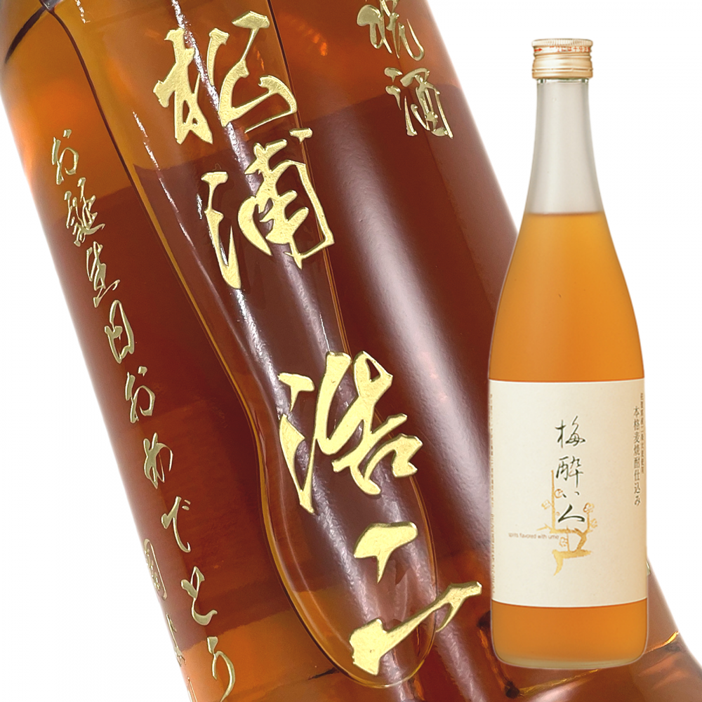 【名入れ彫刻ボトル/彫刻グラス】【梅酒】梅酔い人 720ml 縦書きデザイン 彫刻ボトル