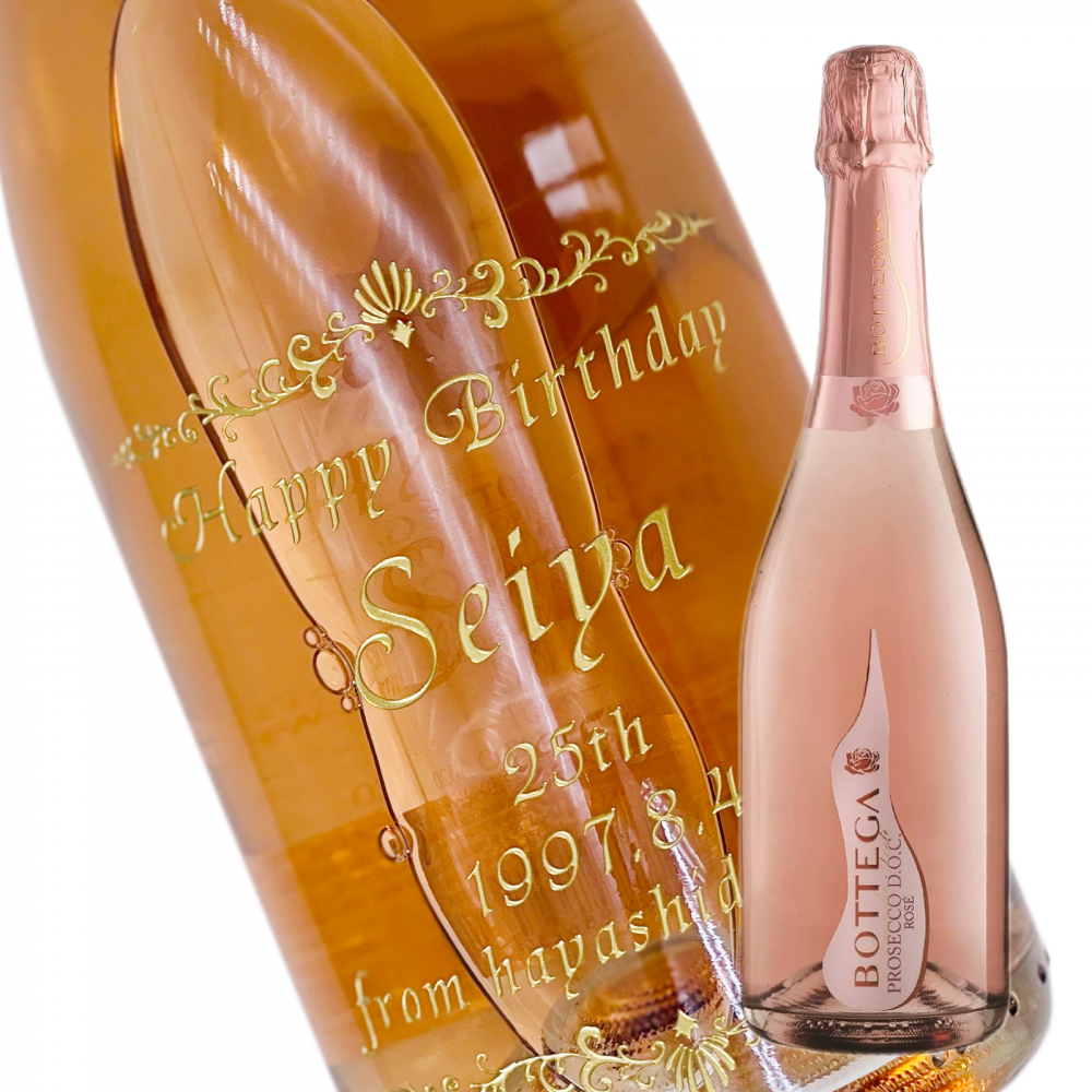 【名入れ彫刻ボトル/彫刻グラス】【スパークリングワイン】ボッテガ ロゼ 750ml 横文字デザイン