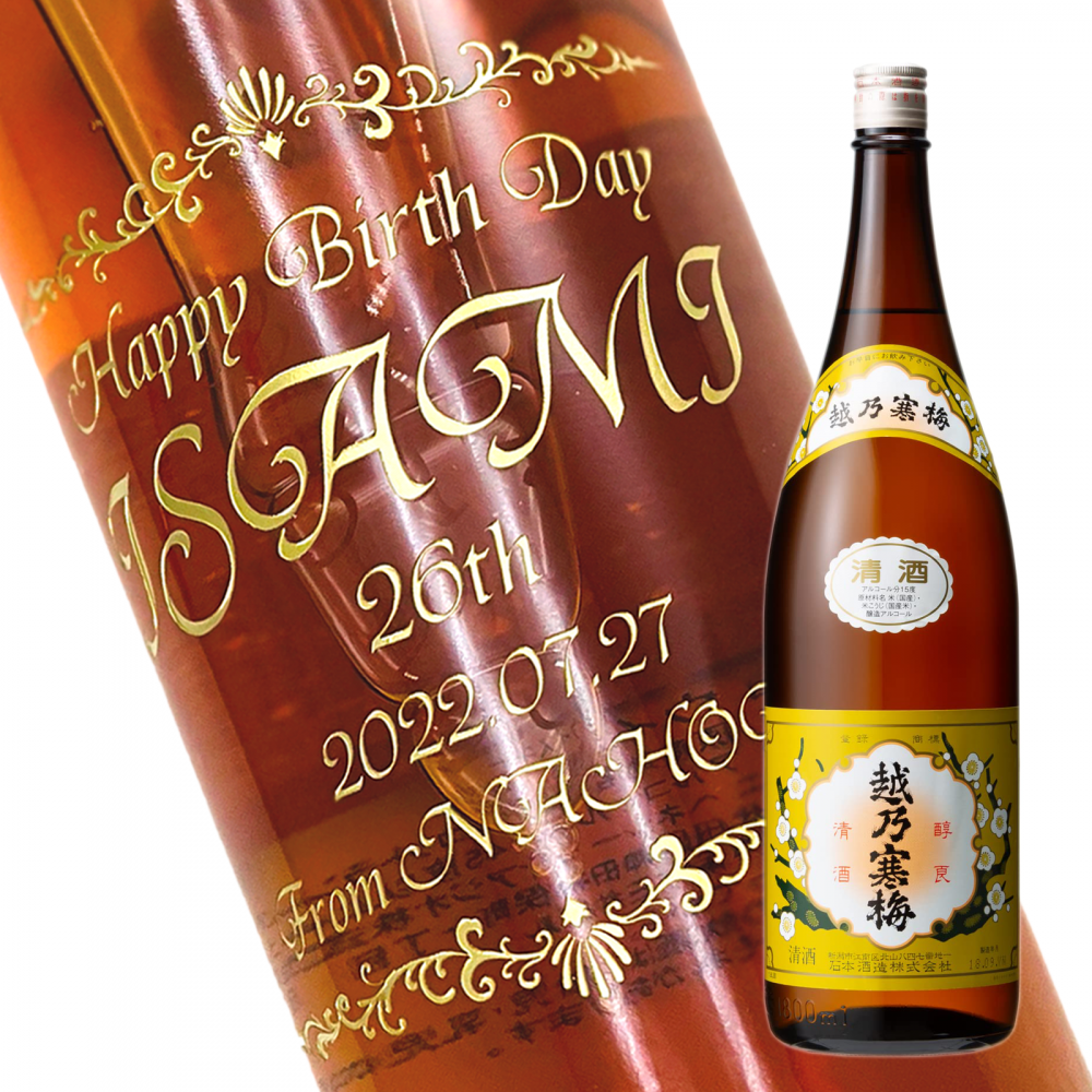 【名入れ彫刻ボトル/彫刻グラス】【日本酒】越乃寒梅 白ラベル 1800ml  横文字デザイン